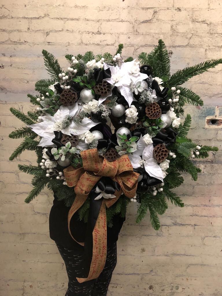 A large bespoke spruce Christmas door ring, at just under 100cm in diameter this is sure to make an impact on your Christmas decorations this year, we can make this in any colour scheme please specify on ordering